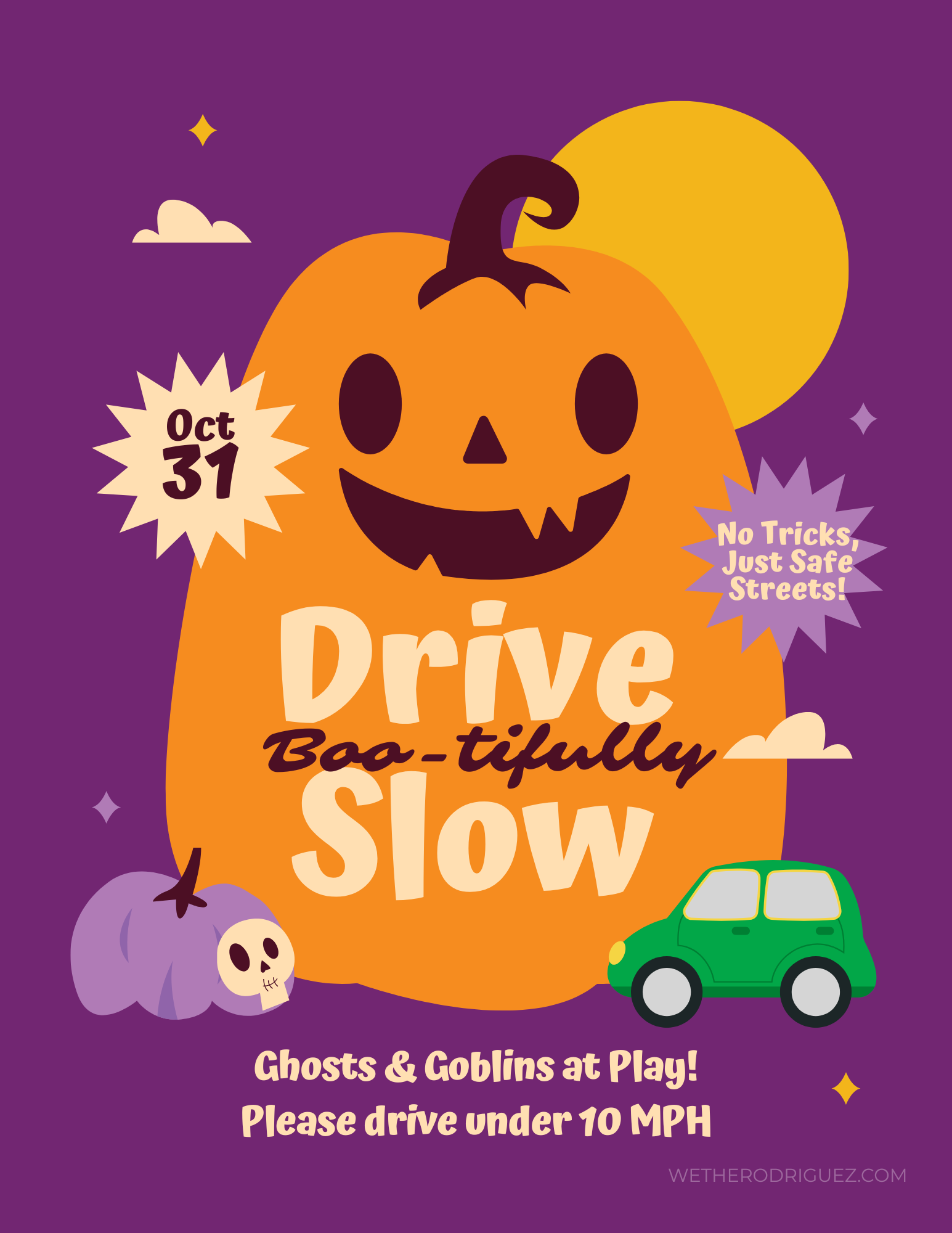 ✓ Drive very slowly — even 15 mph can be too fast on a busy Halloween.
