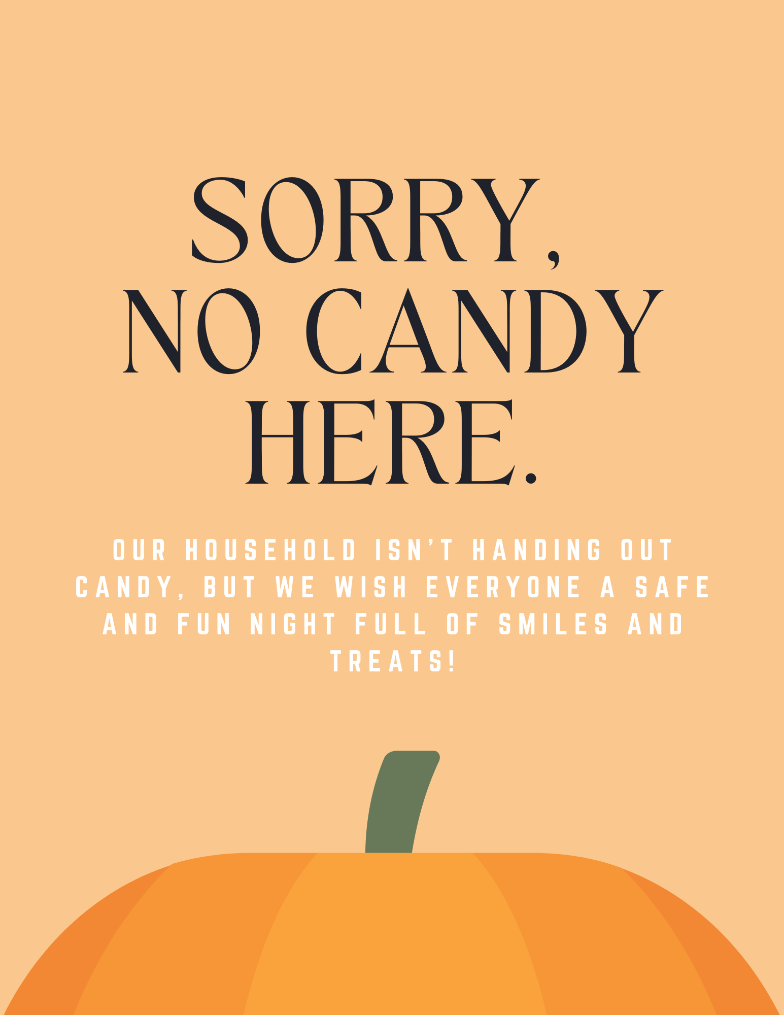 Pro Tip: Consider a friendly neutral sign. Example: “Wishing everyone a safe and happy Halloween!  (No candy this year, thank you!)”